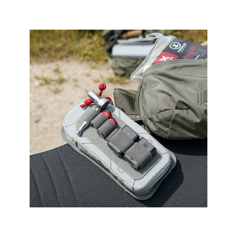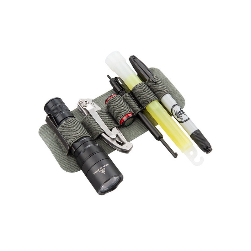 Sangle de rétention VERTX M.A.K. Band Half Quarter en gris. Bande élastique modulaire format compact pour sécuriser petits accessoires dans les sacs VERTX.