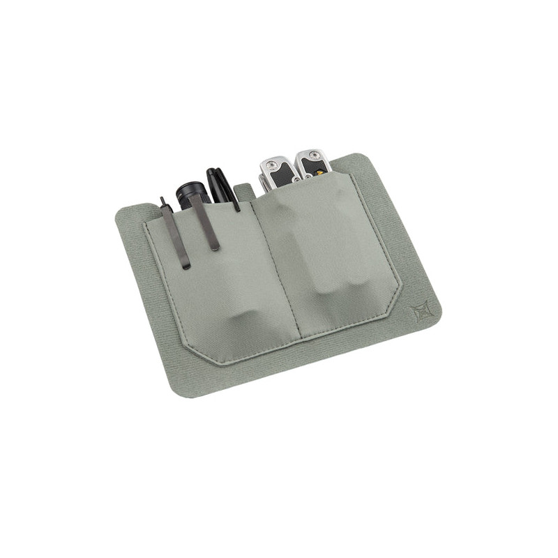 Poche stretch VERTX Stretch Pocket taille Large en gris. Poche extensible en mesh pour passeport, carnet et objets plats avec crochet central permettant 2 petites poches ou 1 grande.
