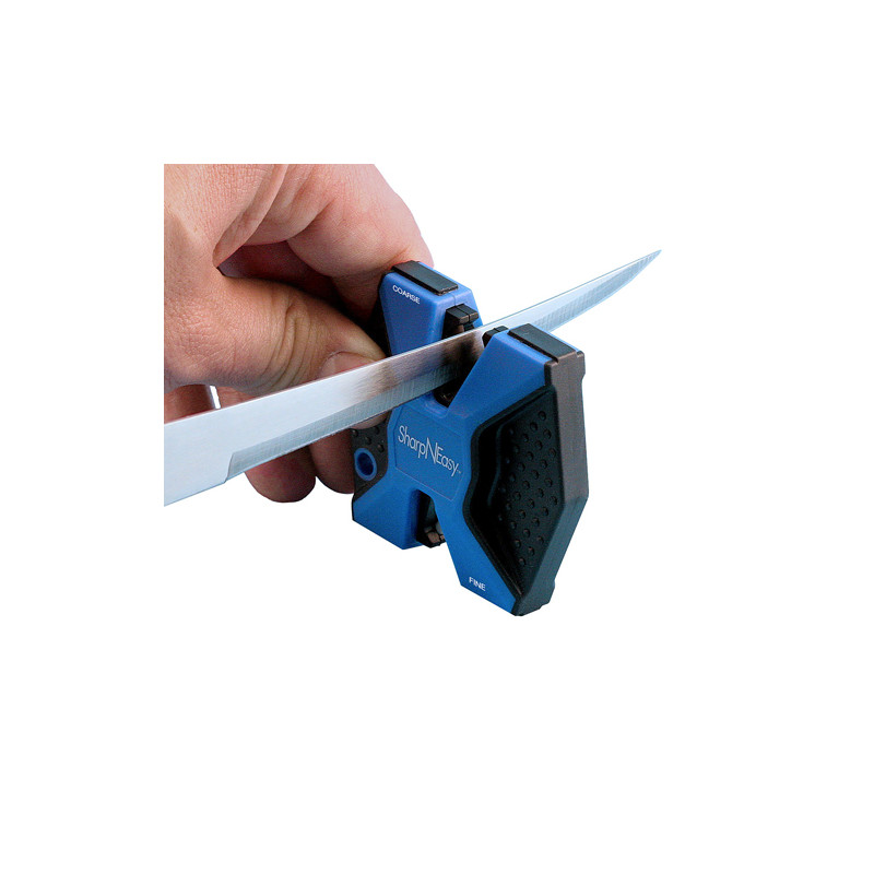 L'Aiguiseur AccuSharp SharpNEasy 334C 2 Étapes est un outil innovant que tout le monde peut utiliser. Les tiges en céramique, grise pour aiguisage grossier et blanche pour finition, sont exactement ce dont vous avez besoin pour entretenir et maintenir vos lames. Les deux étapes permettent d'obtenir l'angle parfait à chaque fois grâce aux deux tiges en céramique stationnaires moulées dans la base. L'aiguiseur 2 étapes dispose également de poignées surmoulées. Le processus de surmoulage permet à l'utilisateur d'avoir une prise confortable et sécurisée durant l'aiguisage. L'unité possède un trou de lanière qui permet une fixation facile à un cordon ou une ficelle. Disponible en carte blister ou en présentoir comptoir 24 pièces. Les tiges céramique fixes garantissent l'angle d'aiguisage correct automatiquement sans nécessiter compétences particulières. Système 2 étapes complet : étape 1 gris céramique pour restaurer lames émoussées, étape 2 blanc céramique pour affûtage fin et polissage. Base moulée robuste pour stabilité durant usage. Poignées ergonomiques surmoulées pour une prise ferme et confortable.