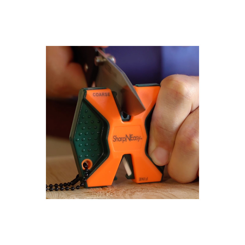 L'Aiguiseur outdoor AccuSharp SharpNEasy 336C est un outil innovant que tout le monde peut utiliser. Les tiges en céramique, grise pour aiguisage grossier et blanche pour finition, sont exactement ce dont vous avez besoin pour entretenir et maintenir vos lames. Les deux étapes permettent d'obtenir l'angle parfait à chaque fois grâce aux deux tiges en céramique stationnaires moulées dans la base. L'aiguiseur 2 étapes dispose également de poignées surmoulées. Le processus de surmoulage permet à l'utilisateur d'avoir une prise confortable et sécurisée durant l'aiguisage. L'unité possède un trou de lanière qui permet une fixation facile à un cordon ou une ficelle. Disponible en carte blister ou en présentoir comptoir 24 pièces. Les tiges céramique fixes garantissent l'angle d'aiguisage correct automatiquement sans nécessiter compétences particulières. Système 2 étapes complet : étape 1 gris céramique pour restaurer lames émoussées, étape 2 blanc céramique pour affûtage fin et polissage. Base moulée robuste pour stabilité durant usage. Poignées ergonomiques surmoulées pour une prise ferme et confortable.