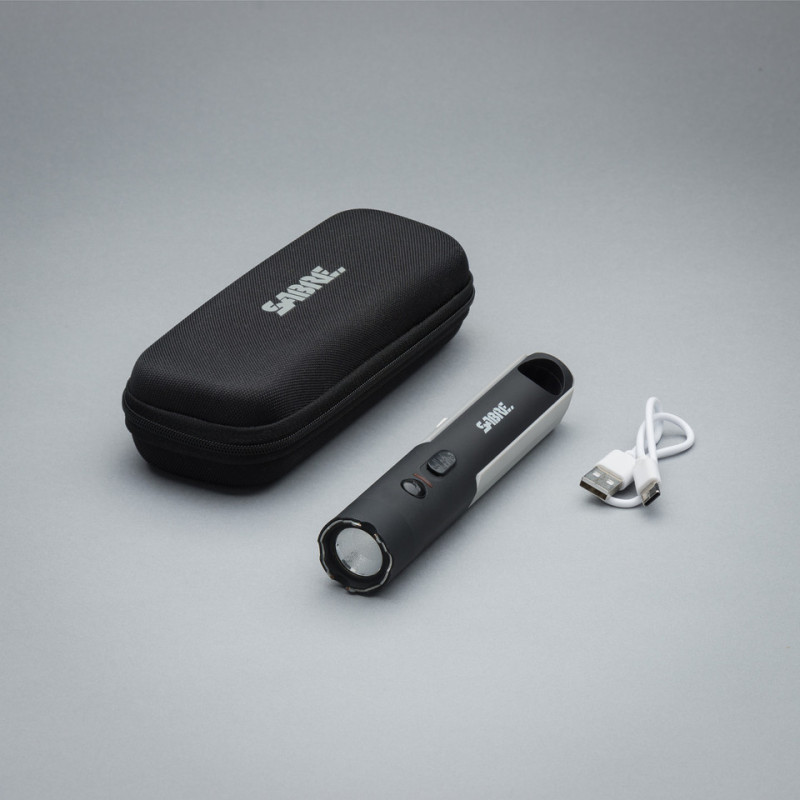 Le design compact de seulement 15,8 x 2,9 cm rend ce dispositif extrêmement portable et facile à transporter dans un sac, une poche ou à la ceinture. Le poids léger de 104 grammes assure un transport confortable sans encombrement. L'étui rigide inclus offre une protection optimale du dispositif durant le transport tout en facilitant l'accès rapide en cas d'urgence. La batterie rechargeable au lithium intégrée avec indicateur de charge élimine les coûts récurrents de remplacement de piles et garantit que vous savez toujours l'état de charge de votre dispositif. Le câble de charge est inclus pour des recharges pratiques. L'interrupteur on/off prévient les décharges accidentelles au repos, et la poignée lisse tactile assure une prise ferme même sous stress. Chaque emballage SABRE inclut des liens vers des vidéos de formation gratuites pour vous préparer à utiliser efficacement votre dispositif face au danger.