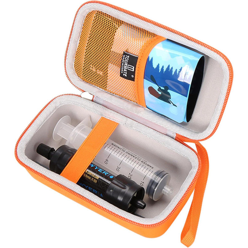 Agrandir l'image L'étui pour filtre à eau Sawyer Mini (Orange) est une housse de transport rigide en EVA conçue pour protéger le système de filtration Sawyer Mini et ses accessoires lors de vos aventures outdoor. Sa coque extérieure imperméable et résistante aux chocs, doublée d'un intérieur ultra-doux, offre une protection optimale contre les chutes, griffures, projections et poussières. Étui vendu seul — filtre non inclus.