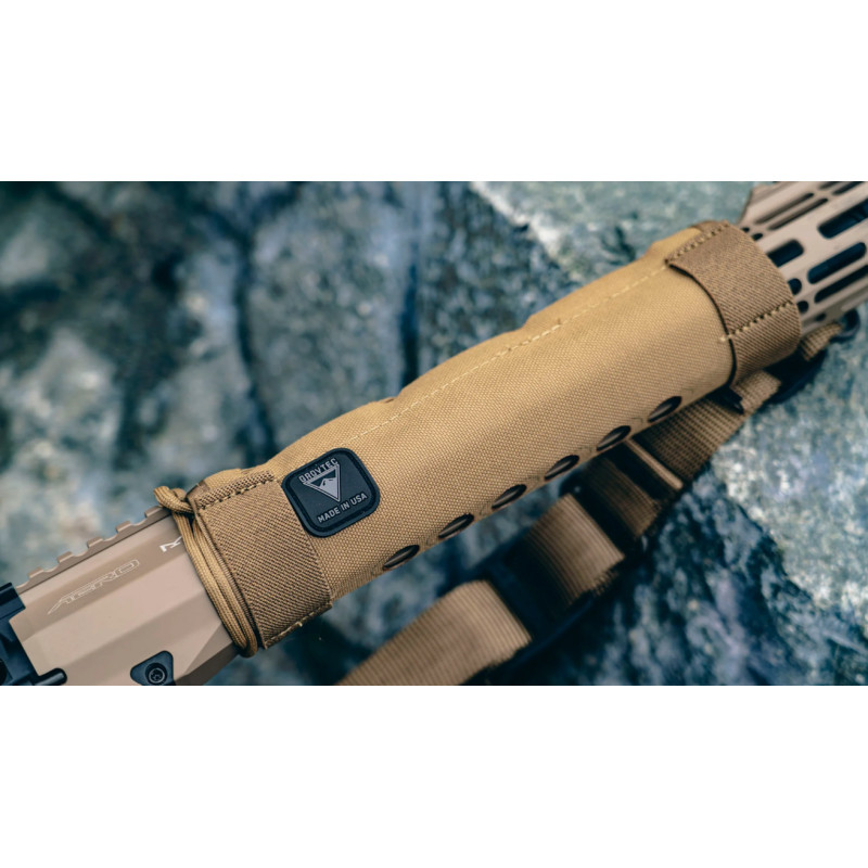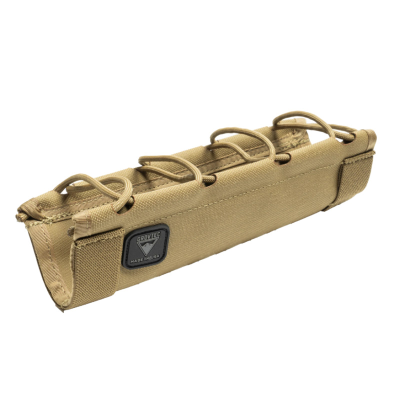 Le Rail Wrap 8" Coyote de GrovTec est une protection garde-main extra-longue de 8 pouces en Cordura 1000D découpé laser avec laçage paracorde 550. Réduit le transfert de chaleur, offre un rangement bretelle intégré et permet le passage de câbles. Compatible accessoires M-LOK haut et bas.