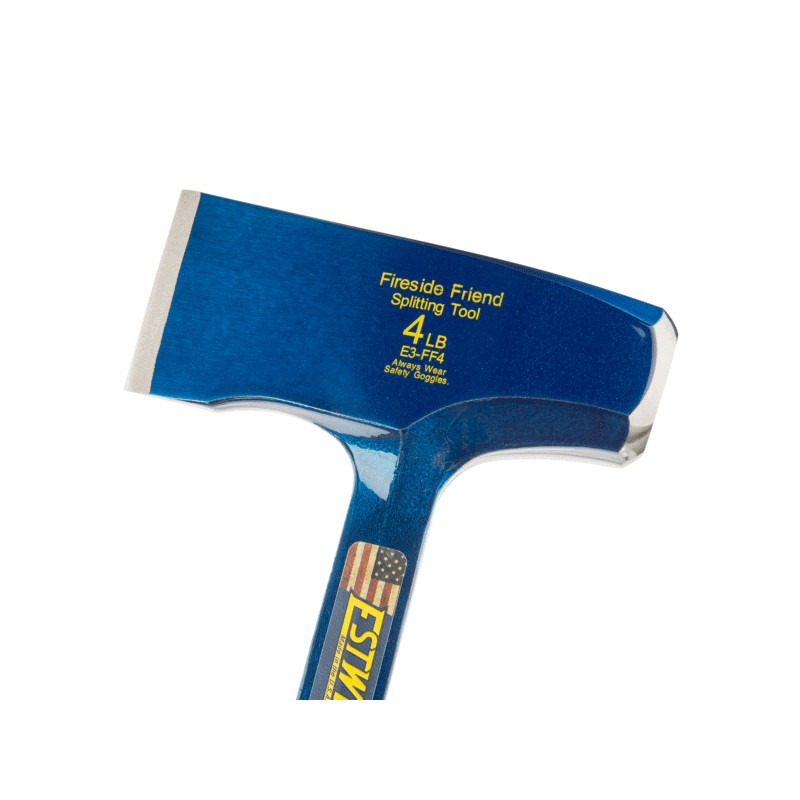 Agrandir l'image L'Estwing Fireside Friend E3-FF4 est un outil de fendage de bûches compact et puissant, forgé d'une seule pièce d'acier américain. Avec ses 1.8 kg concentrés sur 36 cm, cette hache de survie offre une puissance de fendage exceptionnelle pour sa taille. Le grip Shock Reduction réduit les vibrations de 70%. Le dos plat sert de marteau pour enfoncer piquets et coins de fendage.