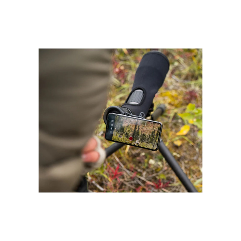 Le MAGVIEW S1 SYNC transforme votre longue-vue en un système de capture photo et vidéo professionnel grâce à sa technologie magnétique auto-alignante révolutionnaire. Conçu pour les oculaires de 51mm à 60mm, cet adaptateur universel intègre le système SYNC avec aimants terres rares qui aligne instantanément votre smartphone avec l'optique pour une digiscopie précise et rapide. Compatible avec tous les smartphones iPhone et Android sans nécessiter de coque dédiée, le S1 SYNC offre une flexibilité inégalée pour capturer la faune, l'observation ornithologique ou les paysages. Fabriqué aux États-Unis, il fait également office de capuchon protecteur pour préserver votre oculaire de la poussière et de l'humidité.