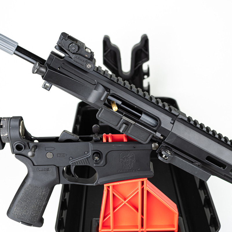Le Guide de Canon Universel offre un nettoyage plus facile et plus sûr en aidant à aligner votre tige de nettoyage avec le canon de votre arme. Un alignement correct de la tige évite les flexions et pliages qui peuvent endommager l'âme du canon. Le port de solvant intégré réduit les risques de déversement et de gaspillage de solvant, ce qui pourrait ruiner la finition de votre arme. Le Guide de Canon Universel Shooter's Choice comprend également un collier conçu pour les fusils de style MSR/AR, qui crée un ajustement plus serré et un support supplémentaire de la partie supérieure du boîtier pendant le nettoyage. Compatible avec la plupart des carabines à percussion centrale et à verrou.
