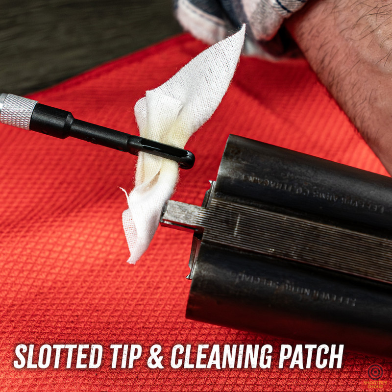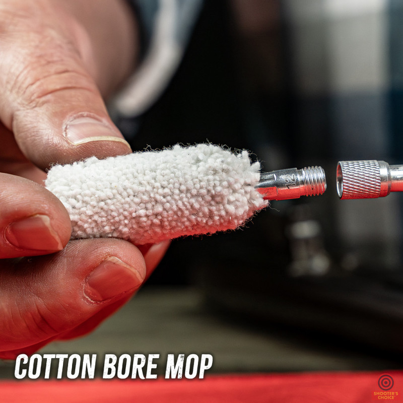 Ce kit Shooter's Choice est conçu pour fusils calibre 12. Kit complet pour fusils calibre 12 avec tige aluminium, écouvillon bronze 76mm, mop coton, jag, embout fendu, adaptateur, guide de canon, 20 patches coton et FP-10 CLP 15 ml.
