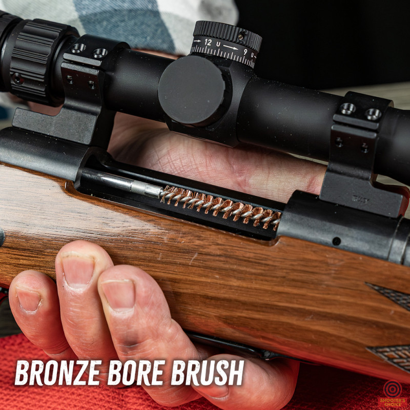 Ce kit Shooter's Choice est conçu pour carabines .270 et 6.8mm. Kit complet pour carabines .270 et 6.8mm avec tige aluminium, écouvillon bronze 76mm, mop coton, jag, embout fendu, guide de canon, 20 patches coton 25mm et FP-10 CLP 15 ml.