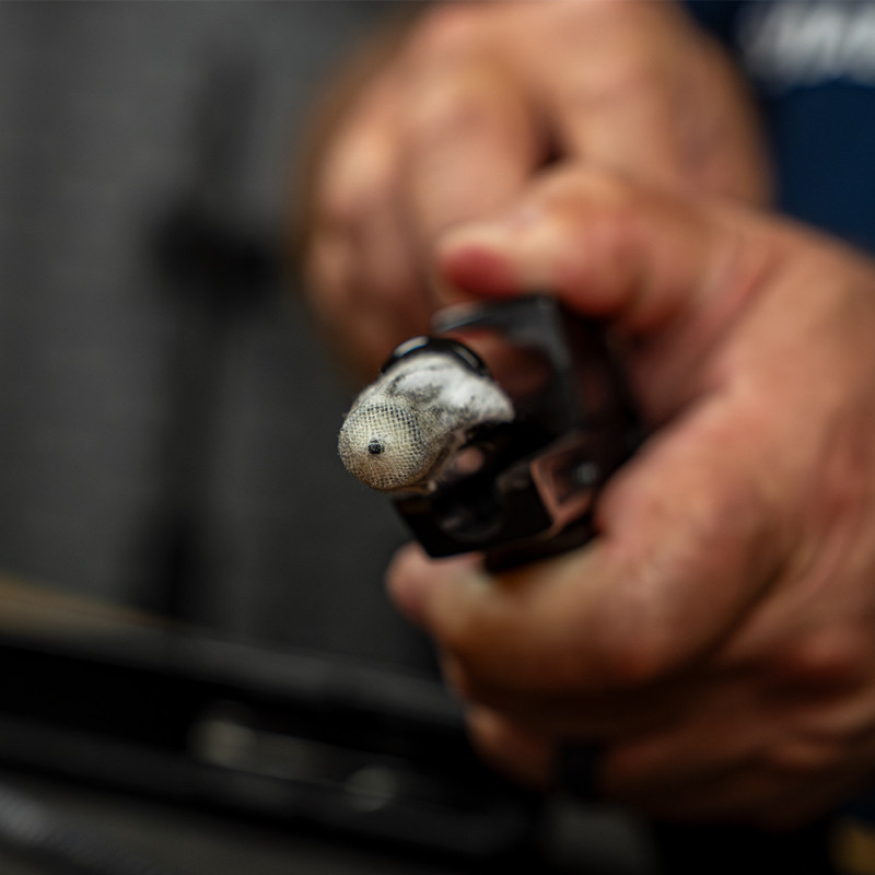 Ce kit Shooter's Choice est conçu pour pistolets .45 acp. Kit complet pour pistolets .45 ACP avec tige aluminium, écouvillon bronze 51mm, mop coton, jag, embout fendu, guide de canon, 20 patches coton 64mm et FP-10 CLP 15 ml.