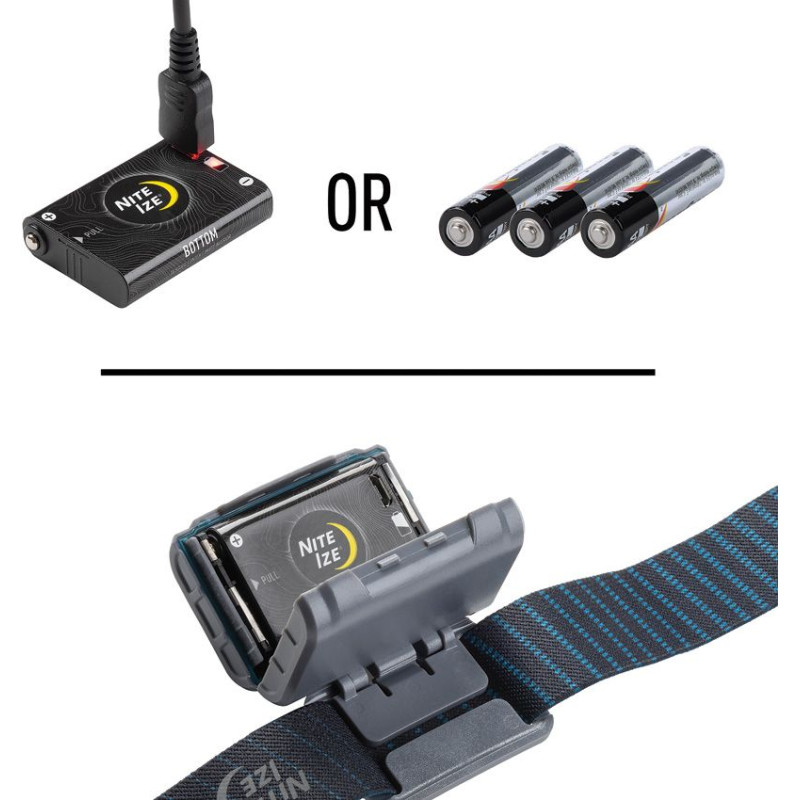 La RH2 incarne la philosophie Nite Ize de solutions d'éclairage pratiques et fiables. Le système PowerSwitch breveté offre une flexibilité unique : batterie Li-ion rechargeable incluse pour un usage quotidien ou 3 piles AAA de secours disponibles partout. Les modes spot (480 lm max) et flood (60 lm) sont contrôlables indépendamment via deux boutons dédiés. La LED rouge préserve la vision nocturne avec deux intensités plus clignotement. L'inclinaison à 90° et le bandeau réfléchissant ajustable assurent un positionnement optimal. Testée pour résister aux chutes de 2 mètres et submersion 1m/30min.