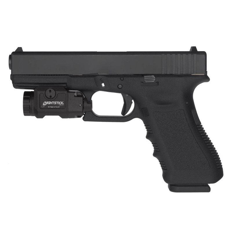 La lampe pour arme Nightstick TCM-10 est une lampe tactique compacte montée sur arme délivrant 650 lumens à partir d'une seule pile CR123. Sa lentille TIR projette un faisceau concentré et lumineux pour l'identification des menaces jusqu'à 136 mètres, accompagné d'un halo périphérique bien défini pour une meilleure conscience situationnelle. Les commandes ambidextres à bascule arrière permettent une utilisation intuitive des modes momentané et constant.