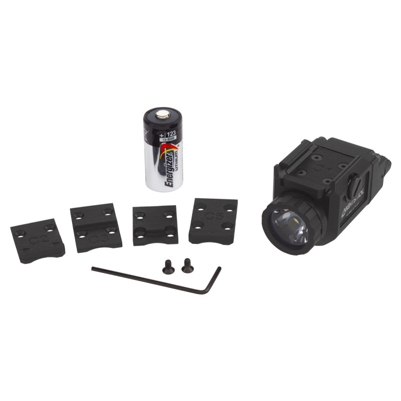 La TCM-10 offre des modes momentané et constant via ses interrupteurs à bascule, plus un mode strobe programmable et un mode économie de batterie. La lentille TIR (Total Internal Reflection) produit un spot central intense pour l'identification précise des cibles, entouré d'un halo net pour le feedback situationnel. Le boîtier arrière en polymère complète la construction aluminium pour un poids optimisé de seulement 70 g. Chaque lampe est numérotée individuellement pour identification personnelle. Garantie à vie limitée.