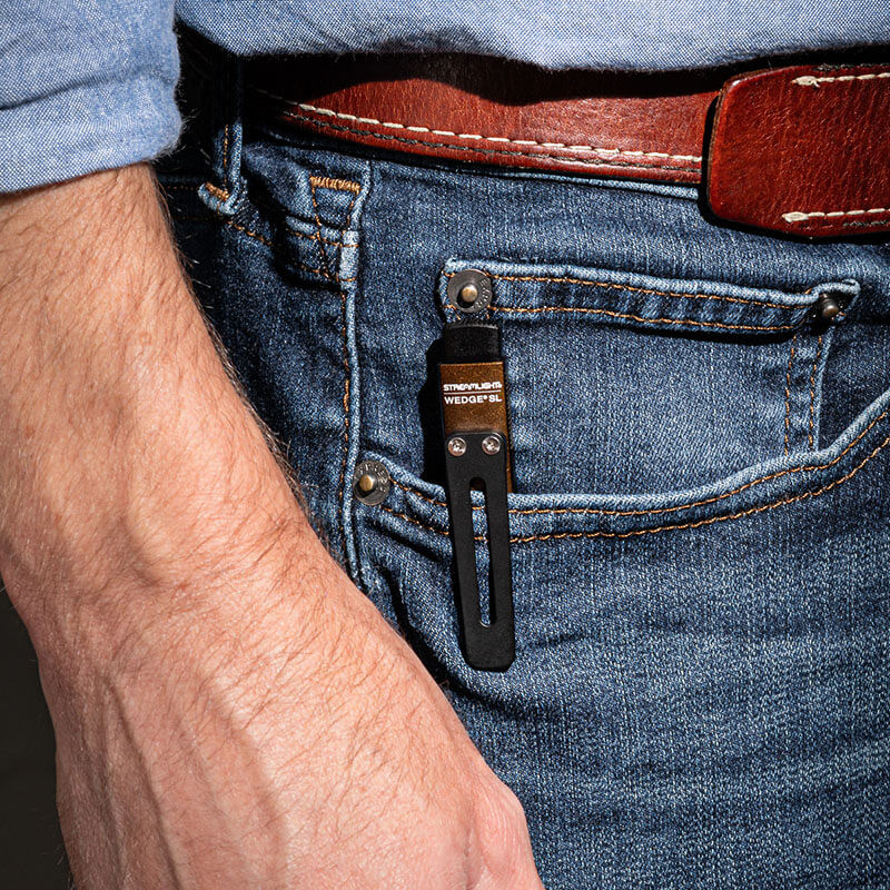 La Wedge SL combine design ultra-fin et performance exceptionnelle pour inspection professionnelle et port quotidien. Le mode THRO délivre 500 lumens avec portée de 80 mètres pour luminosité maximale temporaire quand nécessaire. Les modes constants offrent options polyvalentes avec mode élevé de 100 lumens et 35 mètres pendant 1,75 heure, et mode faible de 50 lumens et 24 mètres pendant 3,5 heures pour autonomie prolongée. L'interrupteur arrière en aluminium permet activation momentanée, constante ou THRO selon les besoins opérationnels.