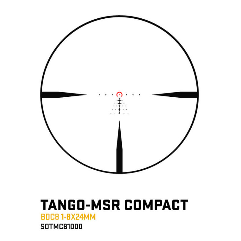 Le Tango-MSR Compact intègre un système de grossissement variable 1-8x permettant une acquisition rapide de cible à faible grossissement et une précision à distance avec le zoom maximal. Le levier de changement de grossissement rapide à interface filetée permet des ajustements instantanés de magnification en situation tactique ou de chasse. Les incréments d'ajustement de 0,5 MOA offrent une précision de réglage optimale avec un déplacement de 44 MOA par rotation complète. Le champ de vision à 100 mètres varie de 38 mètres en faible grossissement à 6 mètres en grossissement maximal. Le dégagement oculaire confortable de 100 à 95 mm (selon le grossissement) assure un usage sécurisé même sur carabines à fort recul. L'ajustement dioptrique de +/- 2,5 permet une adaptation parfaite à votre vision. Le réticule illuminé propose 11 niveaux de luminosité pour s'adapter à toutes les conditions d'éclairage du lever au coucher du soleil. La garantie infinie Sig Sauer couvre ce produit à vie, sans carte de garantie, sans ticket de caisse, et est entièrement transférable au second propriétaire.