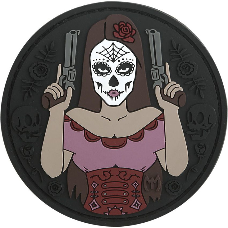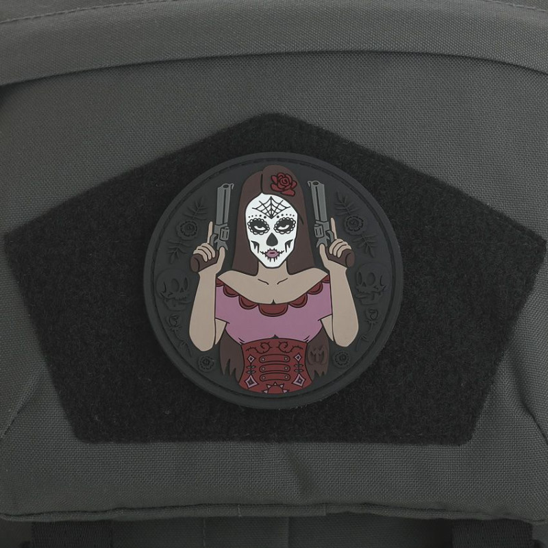 Version couleur du patch Adelita. Cette guerrière de la Révolution mexicaine incarne la force et l'indépendance féminines, armée de deux pistolets.