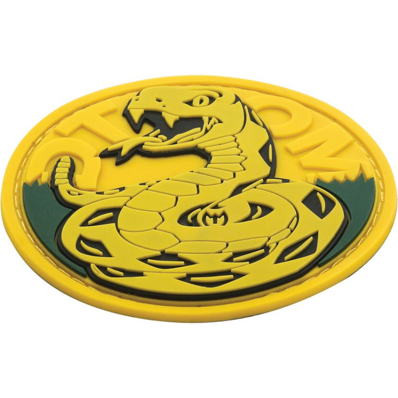 Ce écusson tactique Maxpedition en PVC caoutchouté 3D affiche un design original et détaillé. Version couleur. Texte : "Don't Tread On Me" (en français : "Ne me marche pas dessus").