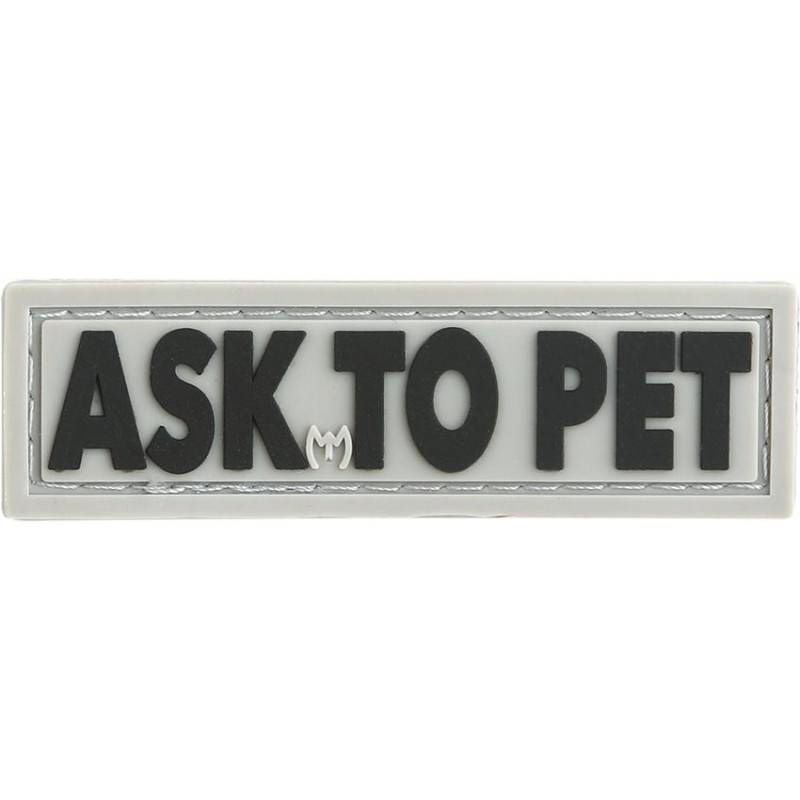 Agrandir l'image Ce patch moral Maxpedition en PVC caoutchouté 3D affiche un design original et détaillé. Version tactique (subdued). Texte : "Ask To Pet" (en français : "Demandez Avant de Caresser").
