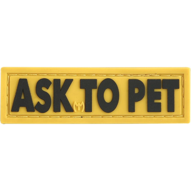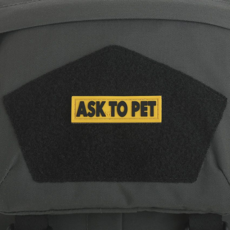 Ce patch moral Maxpedition en PVC caoutchouté 3D affiche un design original et détaillé. Version couleur. Texte : "Ask To Pet" (en français : "Demandez Avant de Caresser").