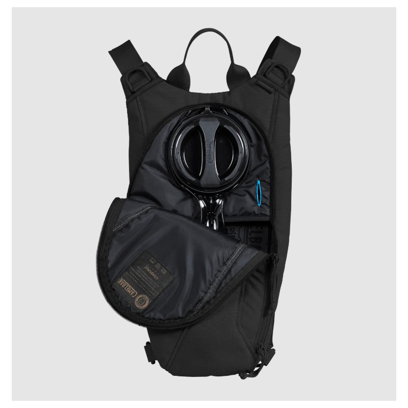 Le sangle de poitrine ajustable et la gestion des sangles par velcro assurent un maintien optimal en toutes situations. Les œillets de drainage au fond du compartiment évacuent l'eau en cas d'infiltration. La zone velcro intégrée permet de fixer rapidement patchs nominatifs et insignes d'unité. L'accès externe au réservoir facilite le remplissage, le nettoyage et l'ajout de glaçons.