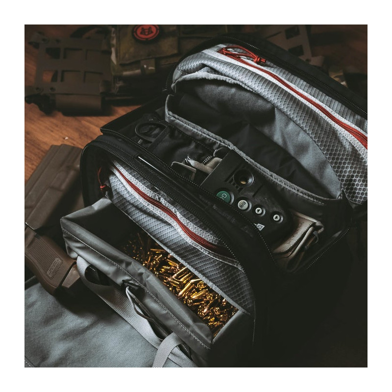 Sac de stand de tir VERTX COF Light Range Bag en coloris Heather Black/Galaxy Black. Organisation optimale avec nombreux compartiments, système de câble antivol et surfaces easy-wipe pour un nettoyage facile.