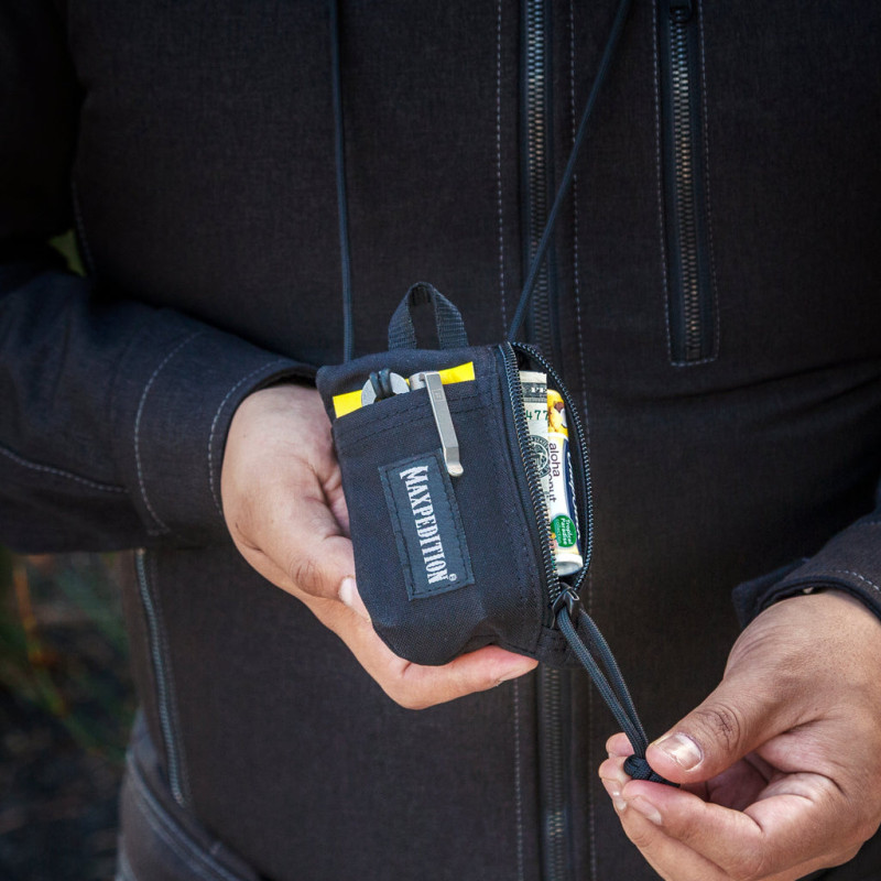 L'Organisateur de Poche tactique Avant Maxpedition Platy 0237MC 9x13 Camouflage est une pochette de transport quotidien mince et asymétrique en nylon 500 deniers, conçue spécifiquement pour le port dans la poche avant de pantalon. Cette pochette présente un compartiment principal avec une fermeture éclair YKK #8, des poches plates avant et arrière pour les outils ou les stylos, et un porte-clés dissimulable à l'arrière. Une dragonne en paracorde amovible permet le port en bandoulière, autour du cou ou en boucle sur la ceinture. Les doubles œillets permettent la personnalisation du système de port.