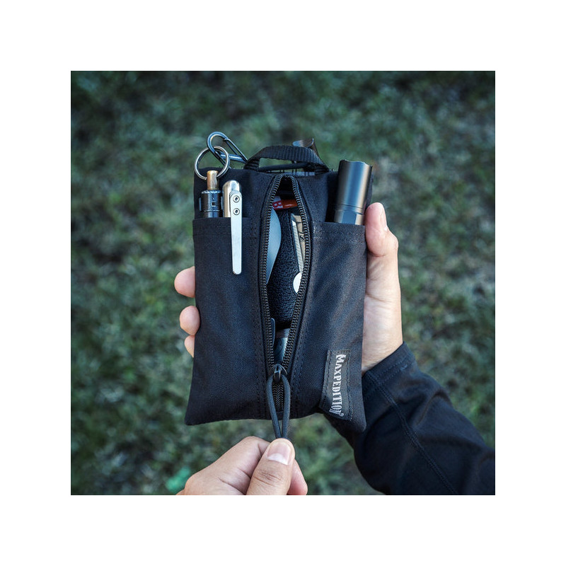 L'Organisateur de Poche Maxpedition Platy 0236DT 13x18cm marron est une pochette de transport quotidien légère et durable de grand format, conçue de manière experte pour maintenir vos essentiels quotidiens organisés et accessibles avec une capacité maximale. Son profil plat se glisse dans les grandes poches de veste, les sacoches ou les compartiments de sacs. La dragonne en paracorde amovible offre des options de port polyvalentes incluant le port en bandoulière, autour du cou ou en boucle autour de une ceinture. Fabriqué en nylon balistique 500 deniers résistant à l'eau avec revêtement triple couche polyuréthane, l'organisateur dispose d'un compartiment principal de 13 × 18 centimètres sécurisé par une fermeture éclair YKK authentique #8 avec tirette en paracorde. Les doubles pochettes à stylos frontales, les multiples poches plates et les sangles élastiques arrière à trois canaux offrent un rangement pour les lampes torches, les outils multifonctions, les stylos tactiques et les carnets.