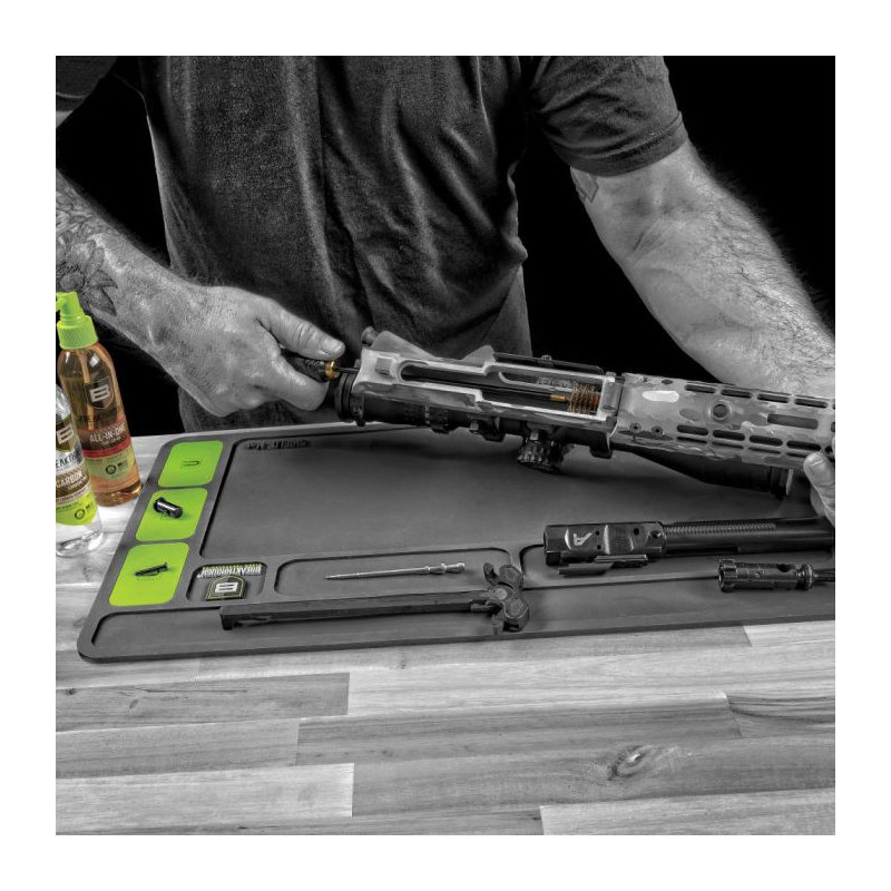 Le tapis de nettoyage pour arme longue Breakthrough Clean Technologies SHIELD Mat pour fusils et carabines à pompe représente l'accessoire essentiel pour optimiser votre routine d'entretien d'armes longues. Développé par Breakthrough Clean Technologies, fabricant américain spécialisé dans les solutions de nettoyage d'armes innovantes, ce tapis professionnel combine fonctionnalité intelligente et durabilité exceptionnelle. Fabriqué en PVC robuste haute densité, il offre une surface de travail fiable et facile à nettoyer pour toutes vos opérations de maintenance. Sa caractéristique distinctive : trois aimants intégrés stratégiquement positionnés pour sécuriser les petites pièces métalliques et prévenir toute perte pendant le démontage. Les compartiments dédiés maintiennent vis, ressorts et composants organisés et à portée de main. Dimensionné généreusement à 91,1 cm × 30,2 cm pour accueillir confortablement fusils et shotguns avec tout l'outillage nécessaire, ce tapis SHIELD offre un espace de travail optimal. Entièrement fabriqué aux États-Unis selon standards de qualité rigoureux, il garantit organisation parfaite et protection de votre plan de travail pendant nettoyage et maintenance.