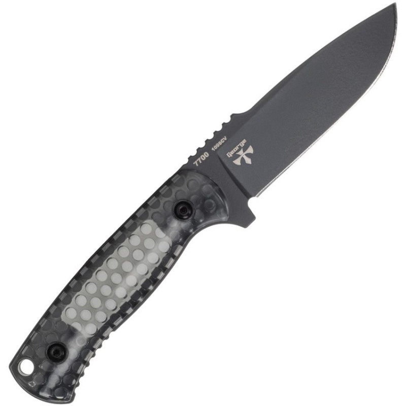 Le KA-BAR 7700 George Cool Name Drop Point est le fruit de la collaboration entre KA-BAR et Les George, vétéran de l'USMC et coutelier primé. Ce couteau à lame fixe moderne allie design tactique et fonctionnalité quotidienne. Sa lame drop point de 108 mm en acier 1095 Cro-Van forgé à partir d'acier brut allemand offre une rétention de tranchant exceptionnelle et une robustesse éprouvée. Le manche en polycarbonate transparent fumé avec texture nid d'abeilles révèle la soie pleine traversante, créant une esthétique unique tout en garantissant une prise ferme dans toutes les conditions. Fabriqué aux États-Unis avec un affûtage plat et une dureté de 56-58 HRC, ce couteau polyvalent excelle dans les tâches tactiques comme dans l'utilisation quotidienne.