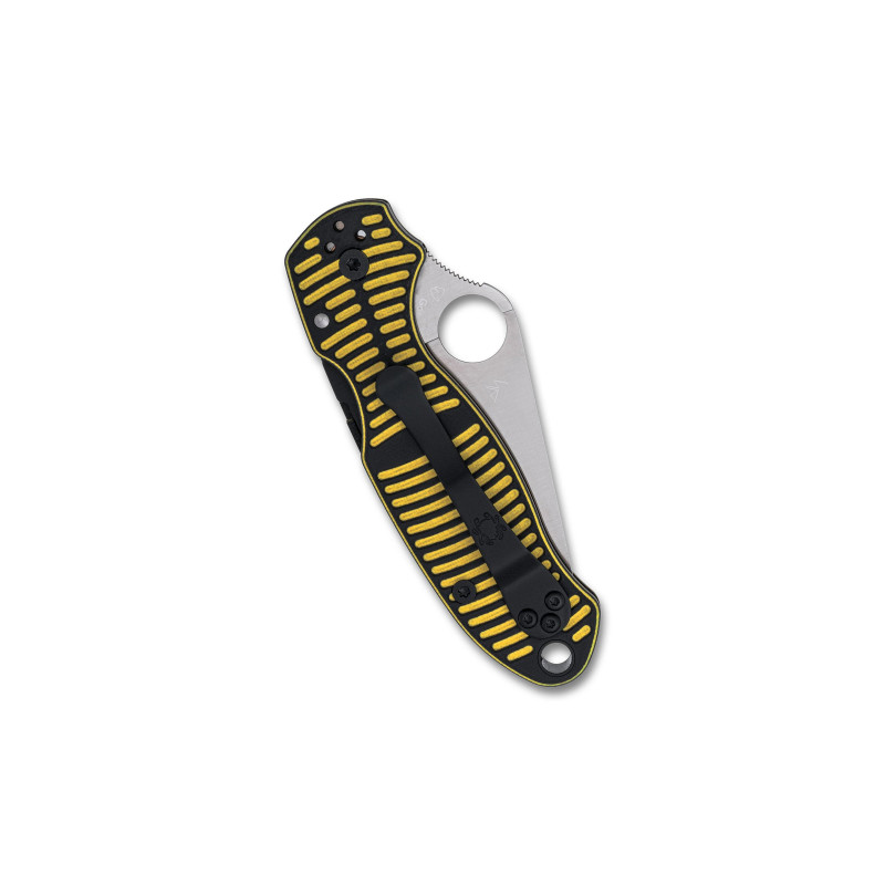 Le Para 3 Salt reprend l'ergonomie légendaire du Para 3 dans un format compact idéal pour l'EDC. L'acier CPM MagnaCut défie la métallurgie conventionnelle en combinant des propriétés habituellement incompatibles. Les plaquettes G10 bicolores sont usinées avec la texture Caribbean Bi-Directional signature de Spyderco, révélant la couche jaune sous-jacente pour créer un motif contrasté antidérapant et hautement visible. Le trou rond Spyderco permet une ouverture ambidextre rapide et fiable. Fabriqué aux États-Unis avec une garantie à vie limitée.