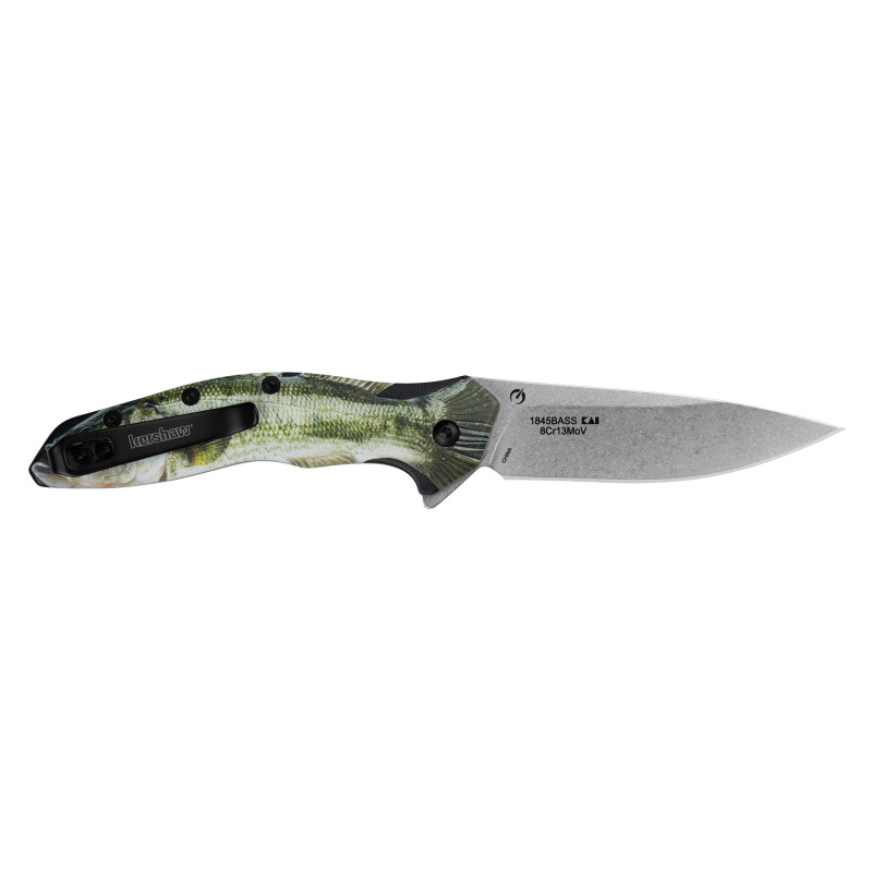 Le Kershaw Shoreline Bass 1845BASS est un couteau pliant EDC au design inspiré de la pêche. Son manche aluminium 3D arbore un magnifique motif de black bass réalisé avec la technologie CCI exclusive Kershaw. L'ouverture assistée SpeedSafe garantit un déploiement rapide d'une seule main.