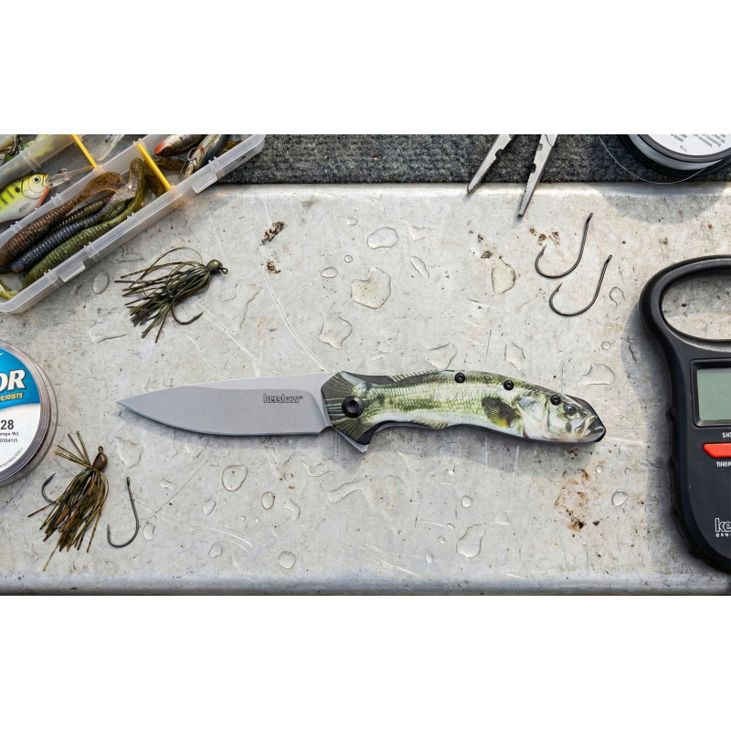 Le Shoreline Bass est le couteau idéal pour les passionnés de pêche et de plein air. La technologie CCI (Composite Component Imaging) de Kershaw permet d'appliquer un design détaillé de black bass sur le manche aluminium, créant une pièce à la fois fonctionnelle et esthétique. Le manche profilé en 3D épouse naturellement la main pour une prise en main confortable. L'ouverture assistée SpeedSafe, activée par le flipper intégré, assure un déploiement instantané. Le clip deep-carry permet un port discret.