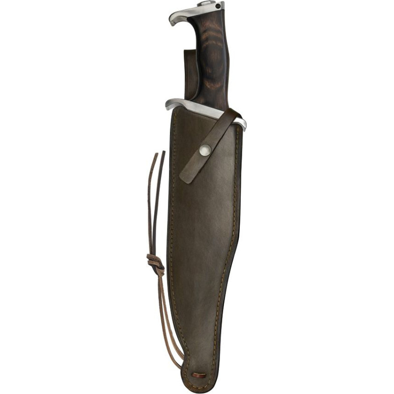 Avec une épaisseur de lame de 5.5 mm, ce Bowie est taillé pour les travaux lourds : batonnage, fendage, travaux de camp intensifs. L'étui Cuir noir avec logo fourni assure un transport sécurisé et un accès rapide.